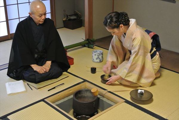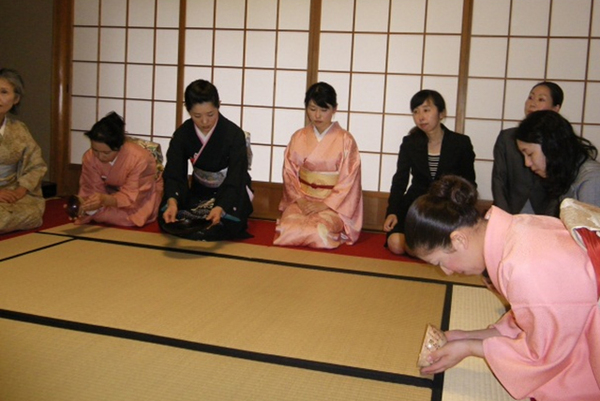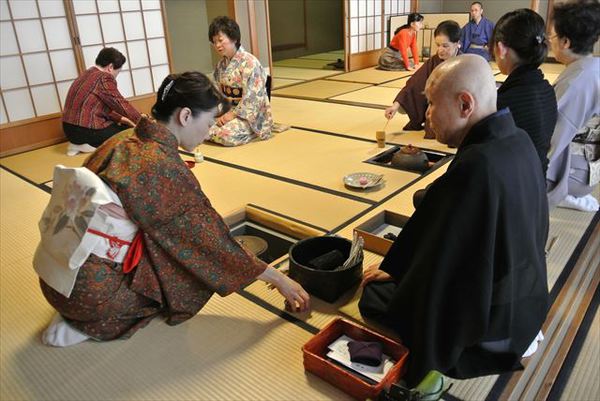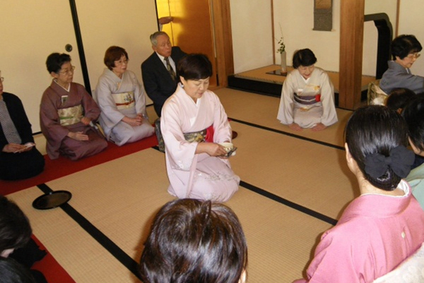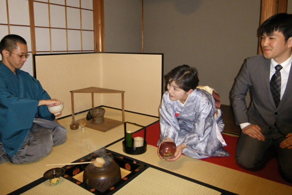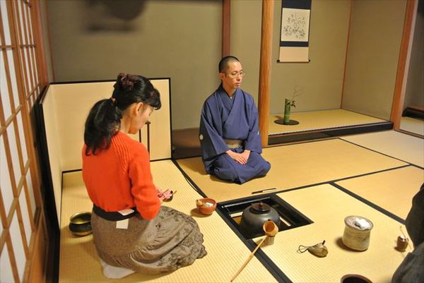 茶室の中を歩くときは畳の縁を踏まないように歩きます。