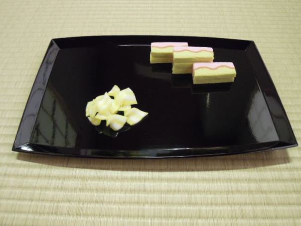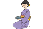 亭主に「どうぞお取りください」とお菓子をすすめられましたら、懐紙を取り出し上に乗せます。菓子器は両手で扱いましょう。