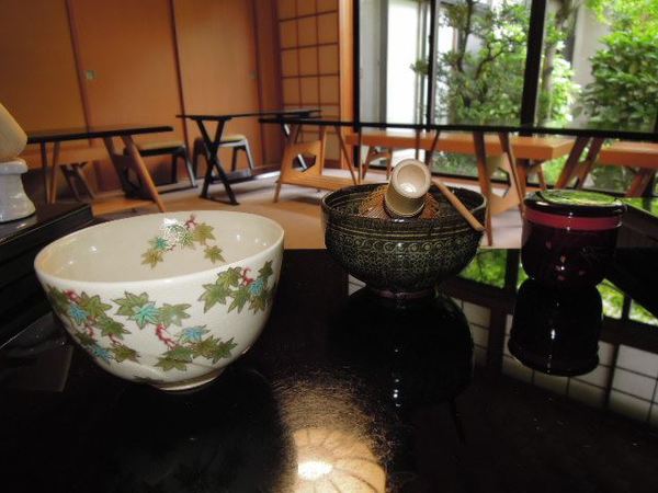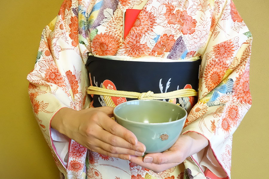 抹茶を飲み終わったら茶碗の拝見をします。畳の近くで茶碗を両手で持ち、回しながら低い位置から鑑賞します。